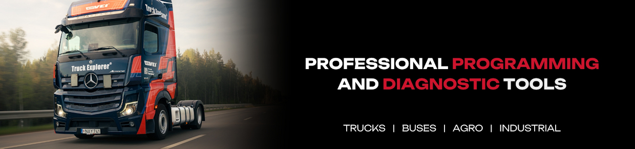 TRUCK EXPLORER® - unique special operation tool for trucks, buses and other heavy vehicles. All in one tool for programming and diagnostic solutions.
